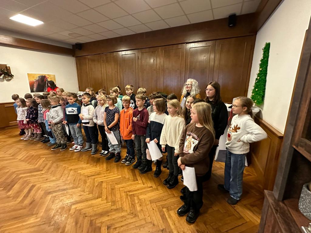 Am 15. Dezember versammelten sich die Kinder der Volksschule Kobersdorf im Gasthaus, um den Klienten der Nachbarschaftshilfe plus ein Lächeln auf die Lippen zu zaubern.