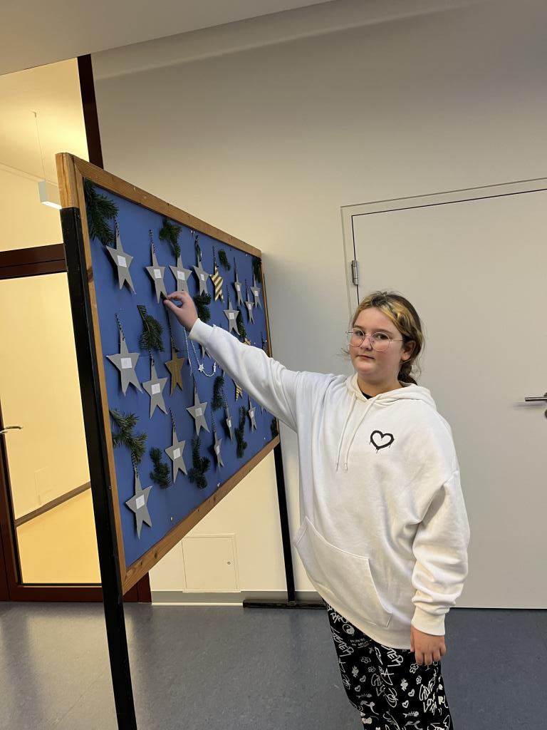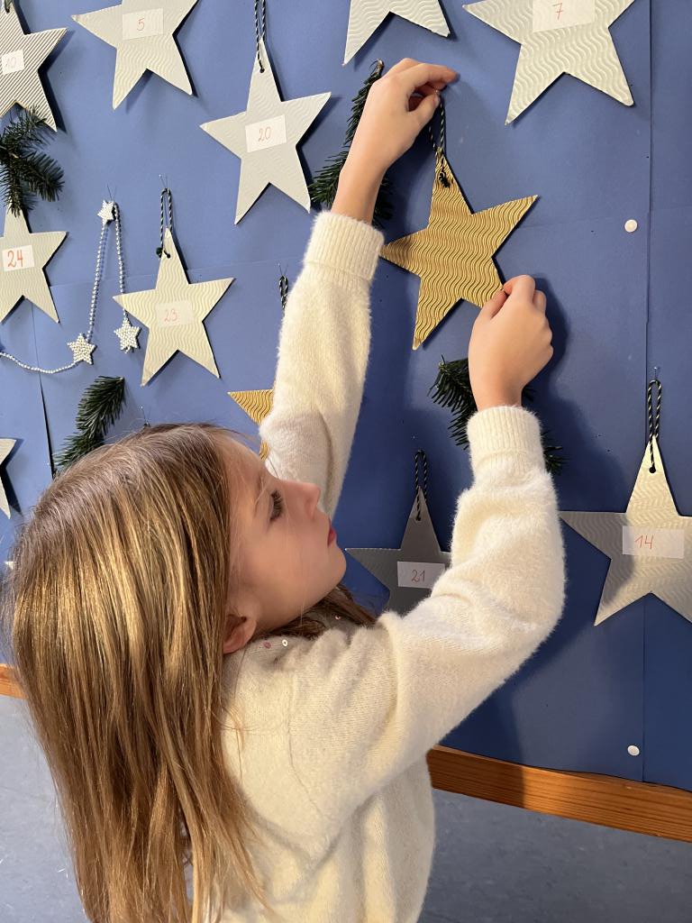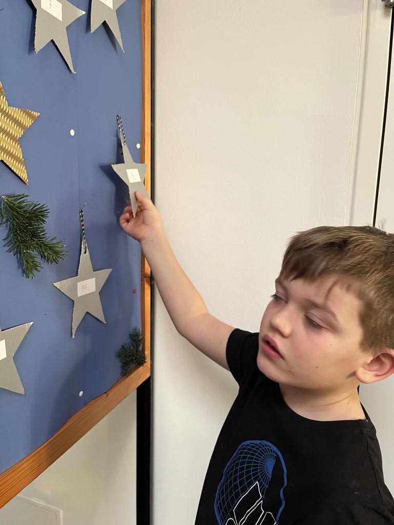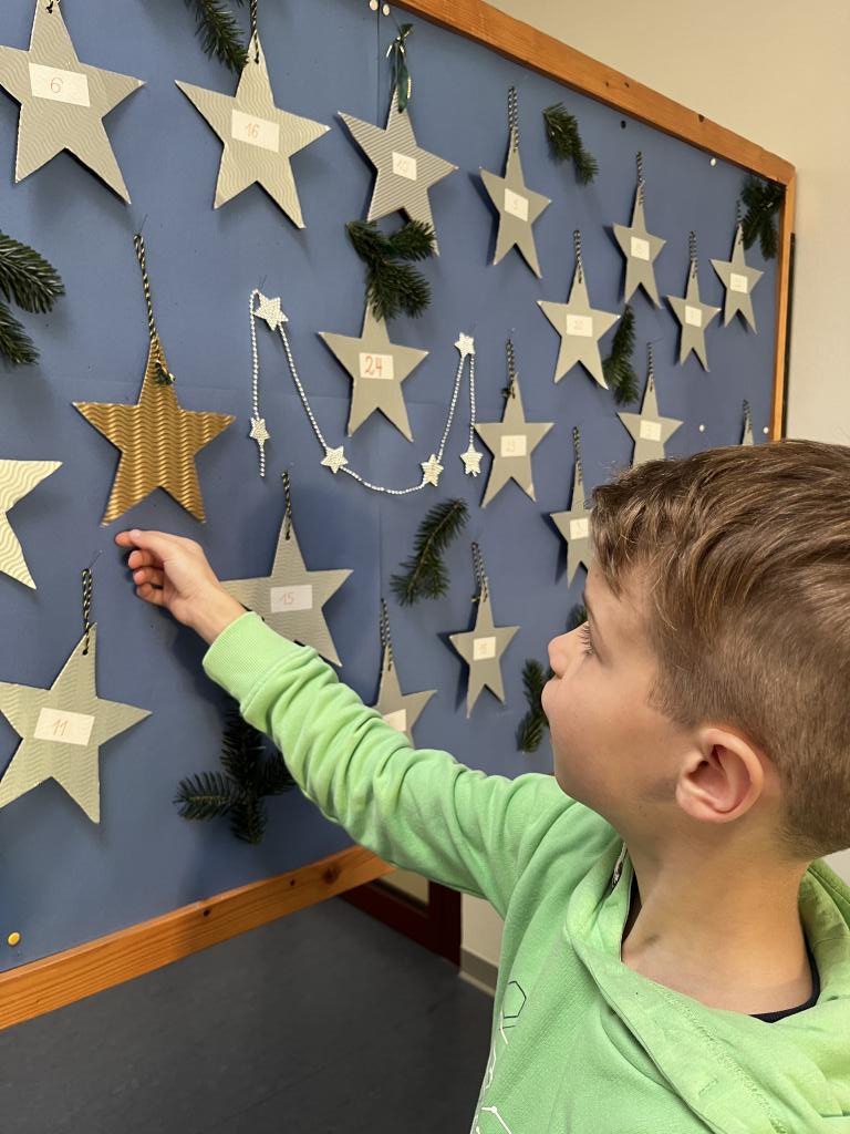 Ein weiteres Highlight im Morgenkreis ist der Adventkalender. Jeden Tag darf ein Kind einen Stern umdrehen und so die Vorfreude auf Weihnachten verbreiten.