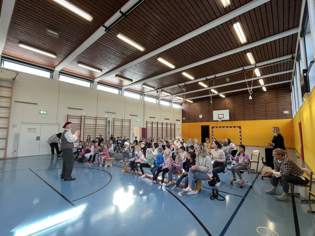 Die Kinder sangen gemeinsam mit Gernot und seinen Puppen und fieberten mit, bis die Großmutter zum Schluss ihre geliebte Kaffeemühle zurückbekam.